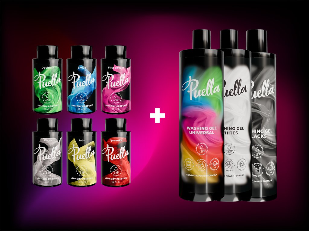 Puella parfem za rublje predstavlja izvrsnu alternativu tradicionalnim omekšivačima. Naši inovativni mirisi izrađeni su na bazi mirisnih ulja, a njihov jedinstveni sastav možete koristiti na svim vrstama tkanina. Njihovim izraženim i dugotrajnim intenzitetom vaše će rublje zagrliti ugodan miris i stvoriti ugodnu atmosferu u vašem domu.